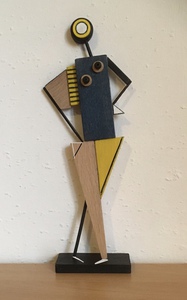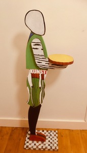 2015Sculptuur van hout. Titel: Tot uw dienst
